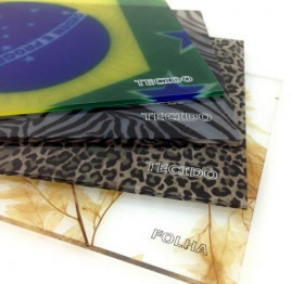 Chapas com tecidos e folhas inclusas, não alterando a característica do acrílico