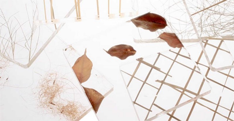 Transparentes, as chapas têm em seu interior cascas de côco, folhas de árvore, bambu, grama e outros materiais de origem natural.